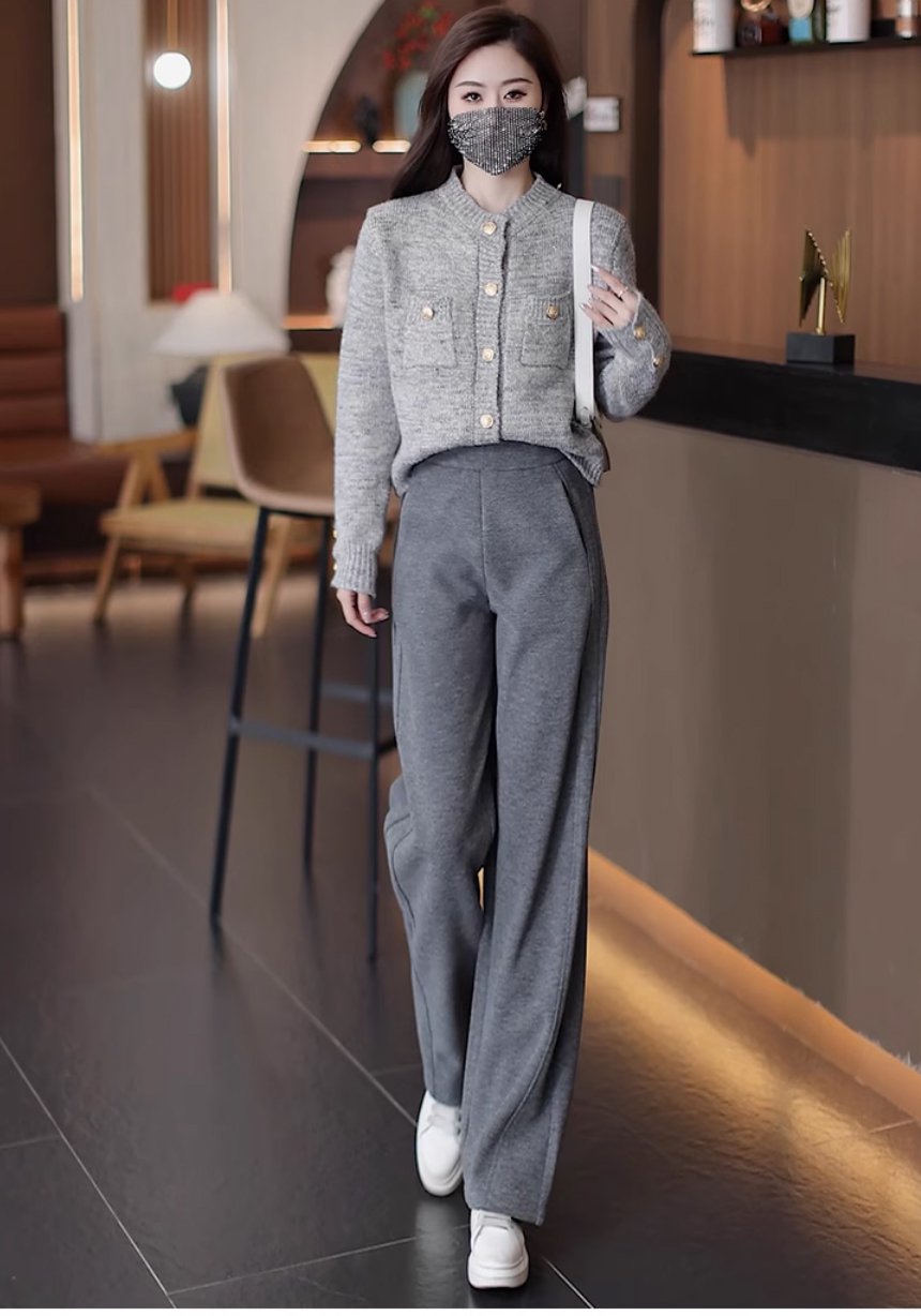프리미엄 캐시미어 커브드 와이드 팬츠